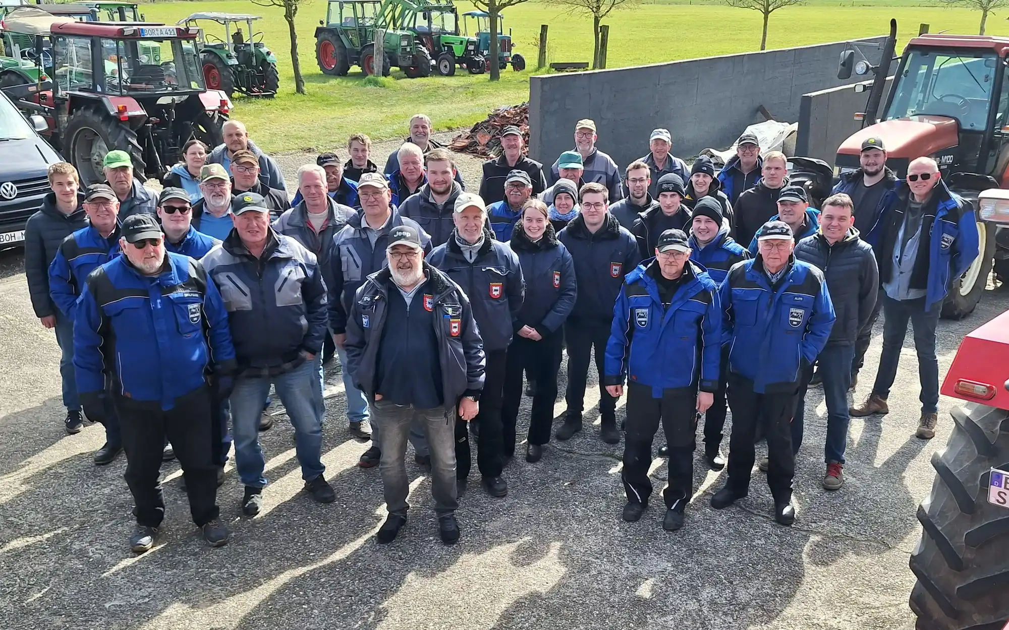 Abfahrt war um 9:45 Uhr. Es ging mit 47 Fahrzeugen über viele kleine Nebenstraßen zur ersten Station unserer Tour, der Firma Heselhaus-Landmaschinen in Borken-Rhedebrügge. Hier waren viele Traktoren verschiedener Baujahre zu bestaunen.